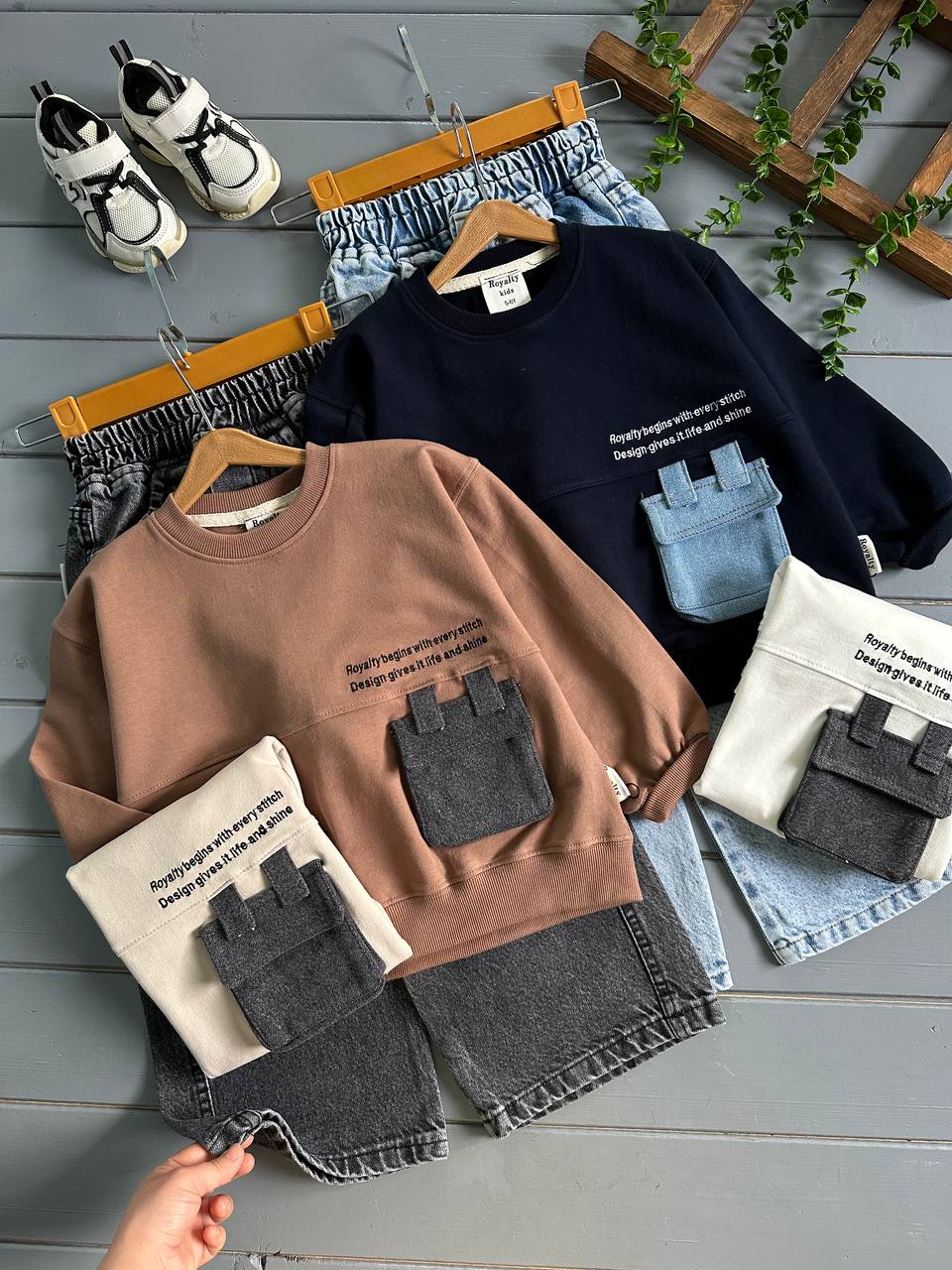سایز۸_۹: قد۵۱/پهنا۴۸/آستین۵۵/شلوار۷۵/فاق۲۷/یکطرف ران۲۶/دورکمر با کش۷۴
