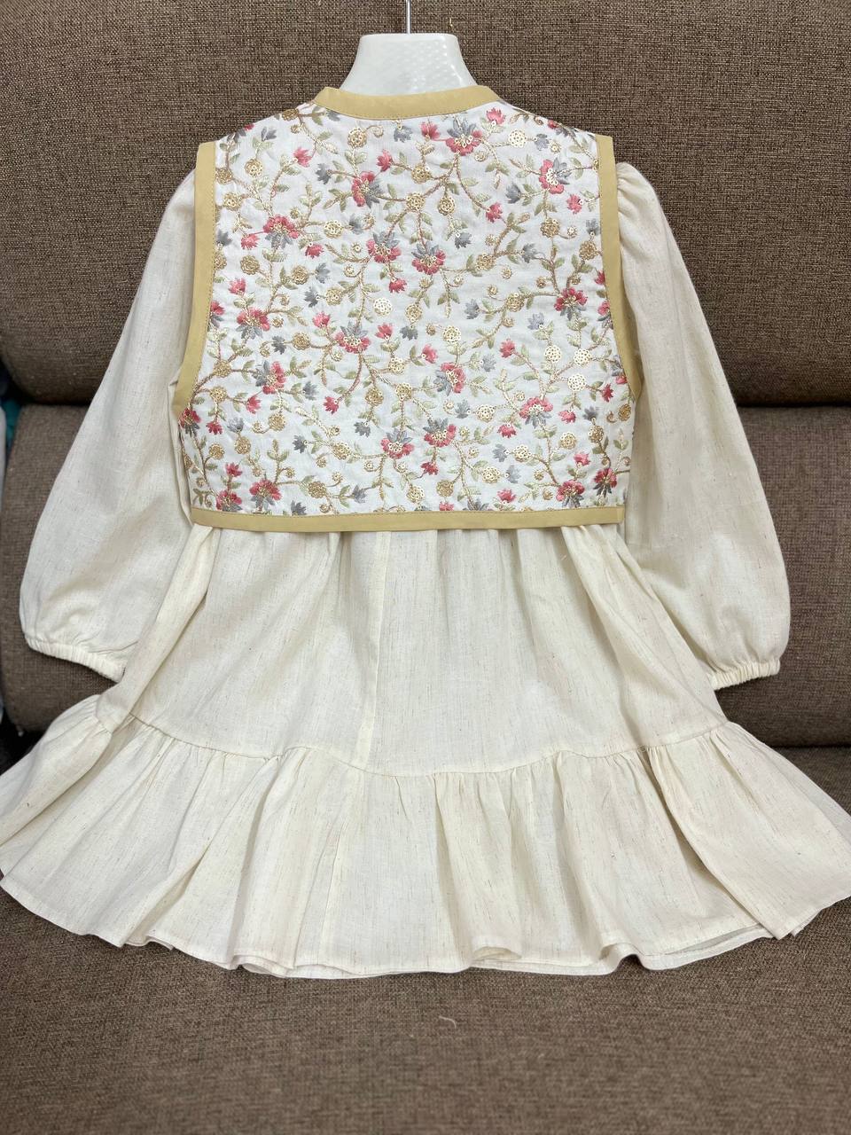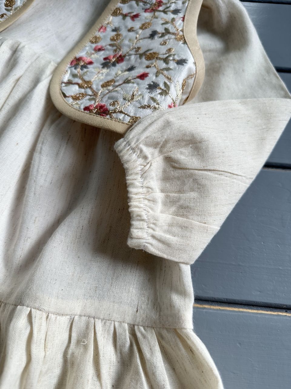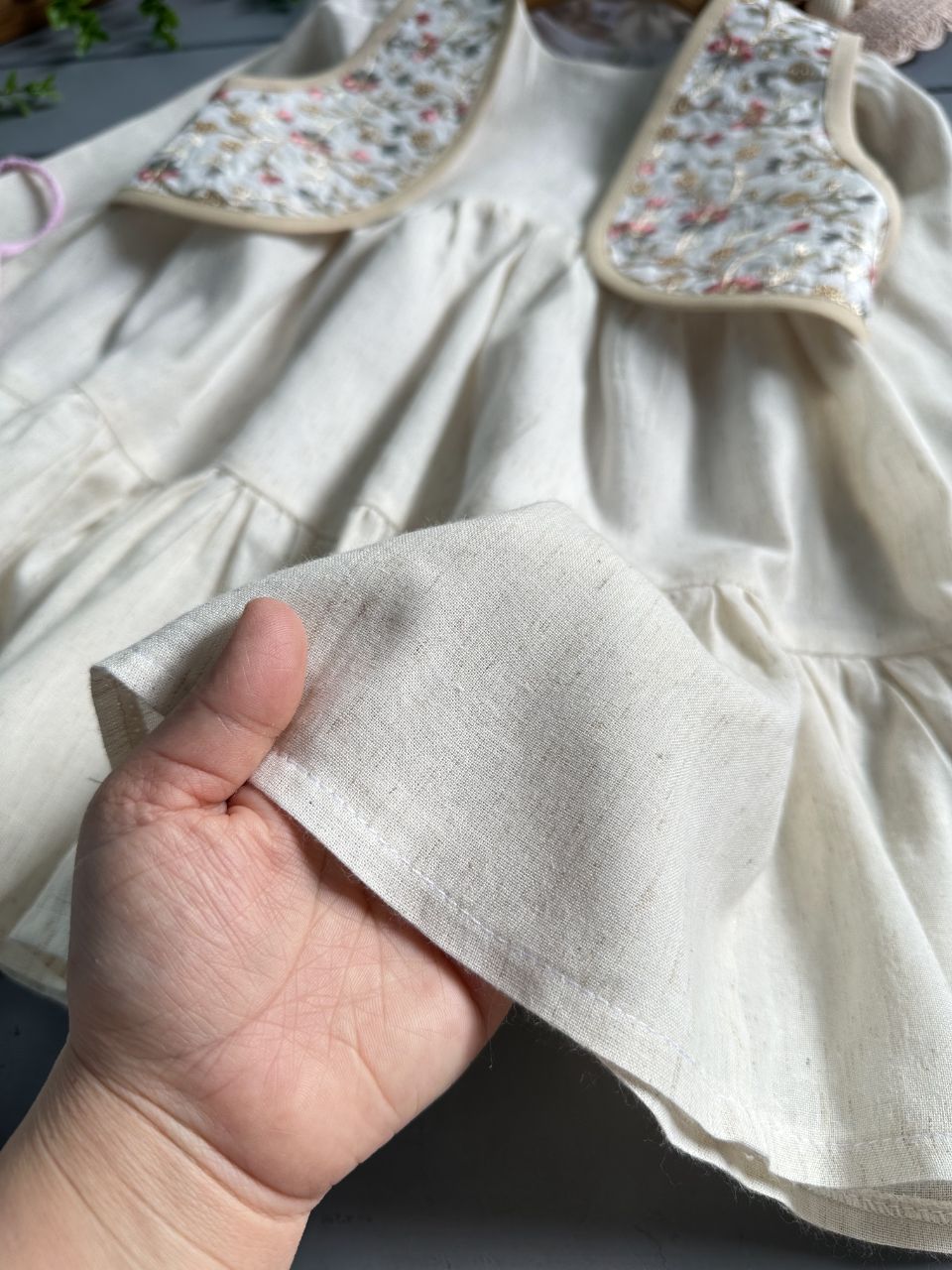 پیراهن لینن نچرال آستردوزی شده