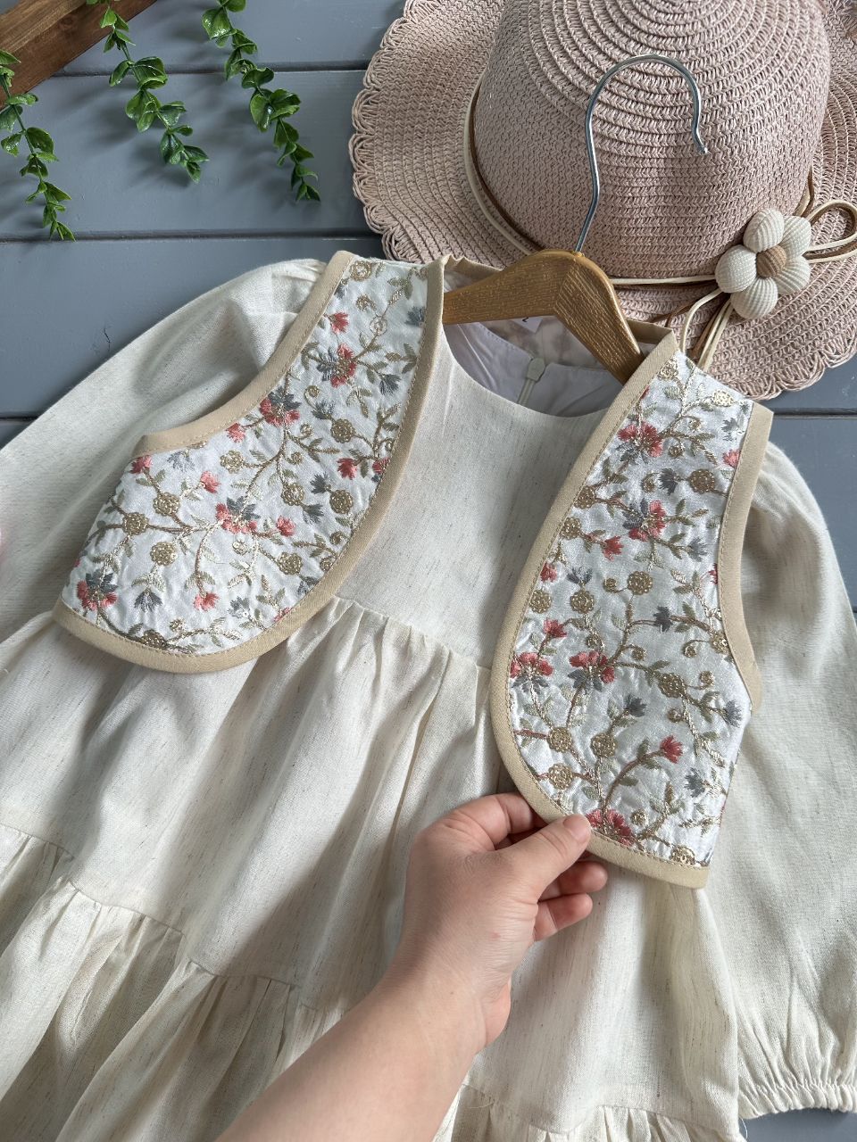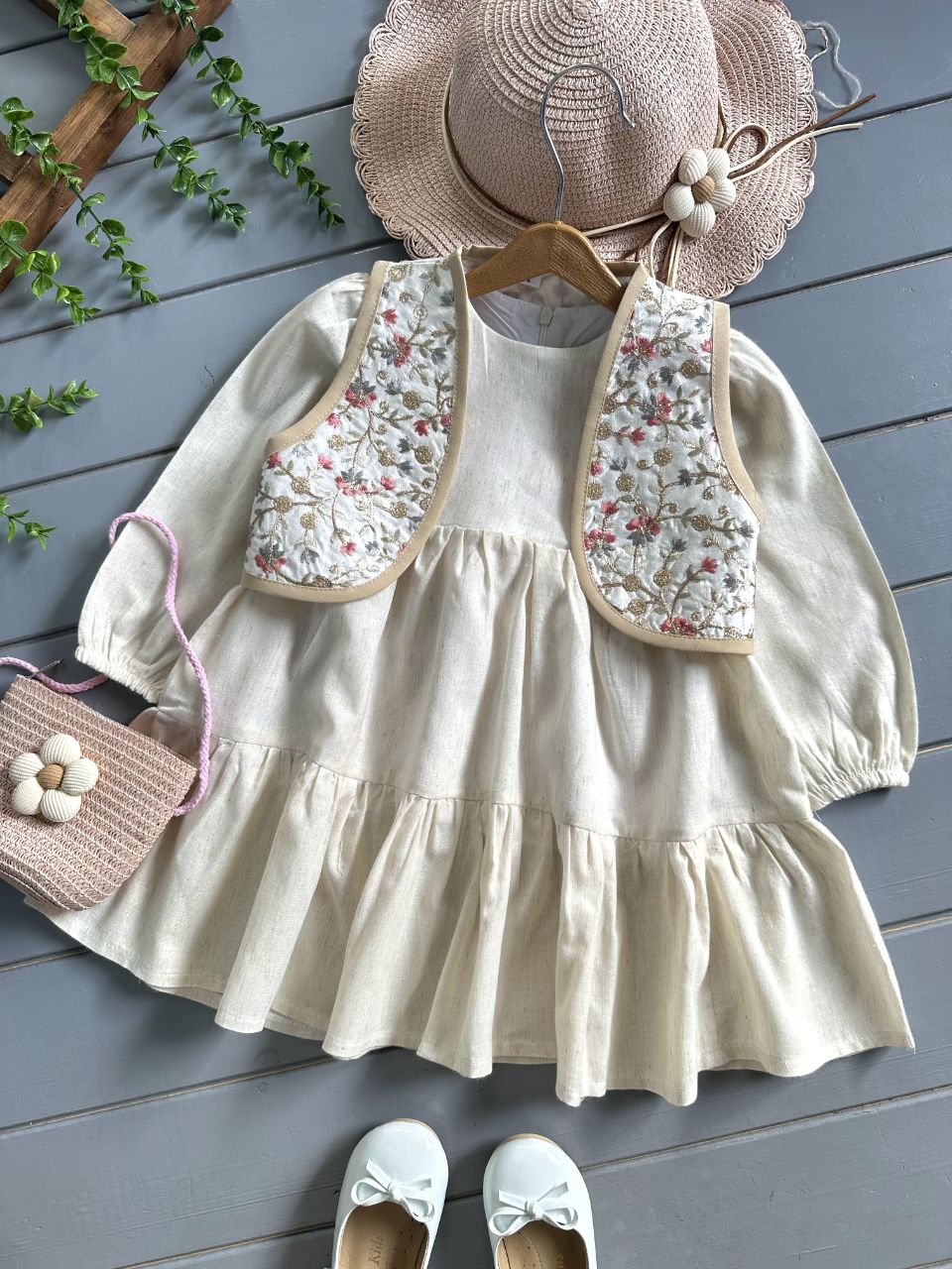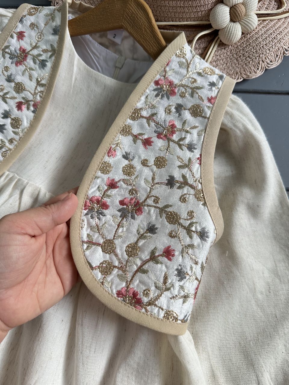 پیراهن لینن نچرال آستردوزی شده